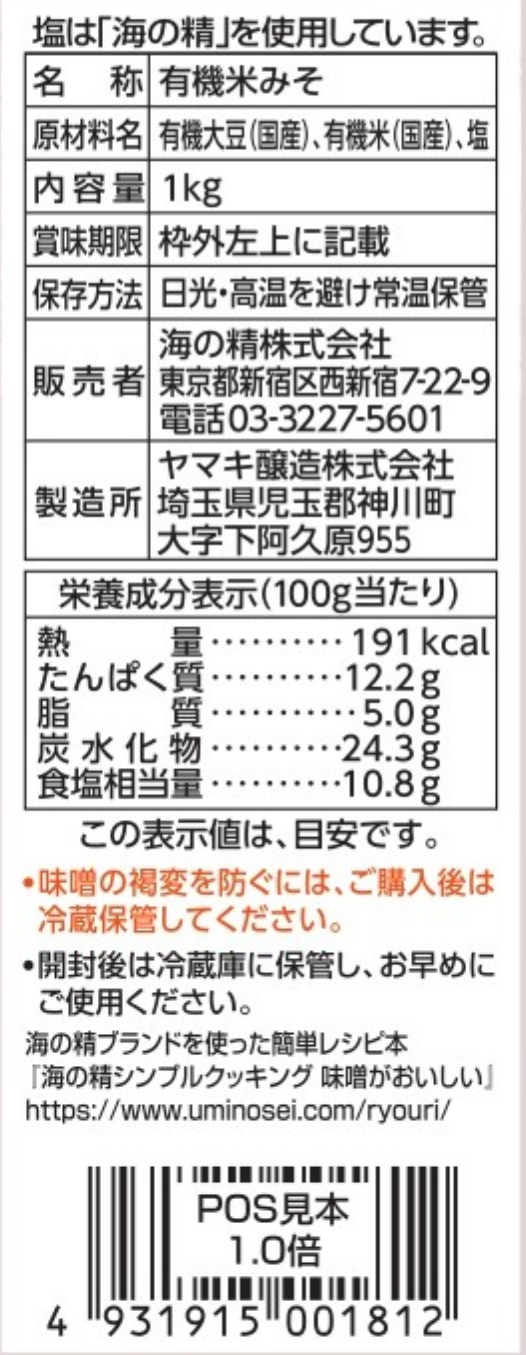 【2025年11月新発売】海の精 有機玄米味噌