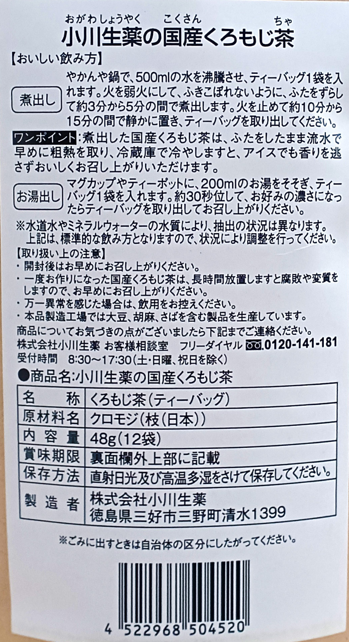 ワンポイント:煮出した国産くろもじ茶は、ふたをしたまま流水で早めに粗熱を取り、冷蔵庫で冷やしますと、アイスでも香りを逃さず美味しく召し上がりいただけます。
