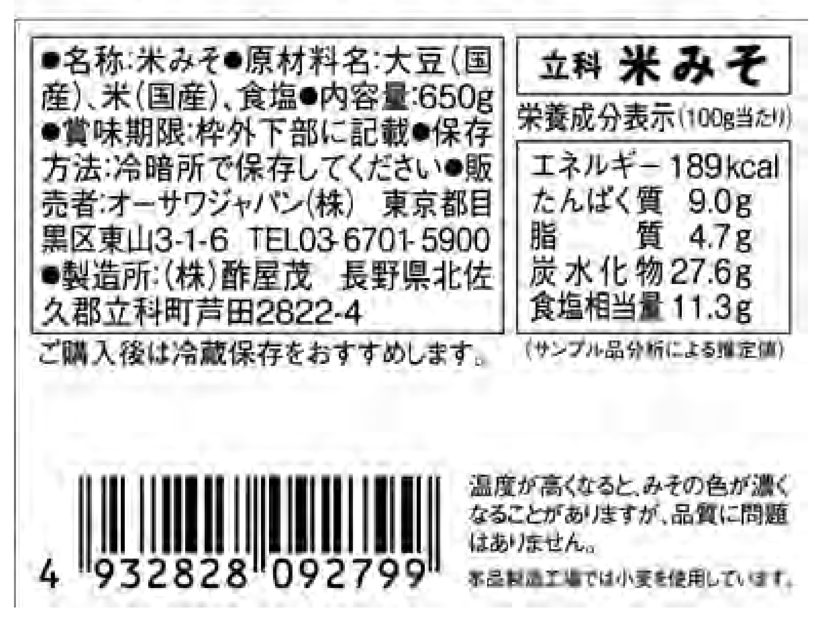 【原材料】大豆(北海道)、米(長野県)、食塩(天日塩)